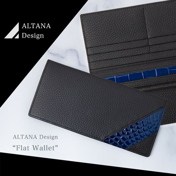 フラットウォレットCは、シンプルなデザインの中で存在感を放つクロコダイルのアクセント。エルメスグループも採用する最高品質の素材は、老舗との信頼関係を築いてきたオルタナデザインならではのクオリティです。