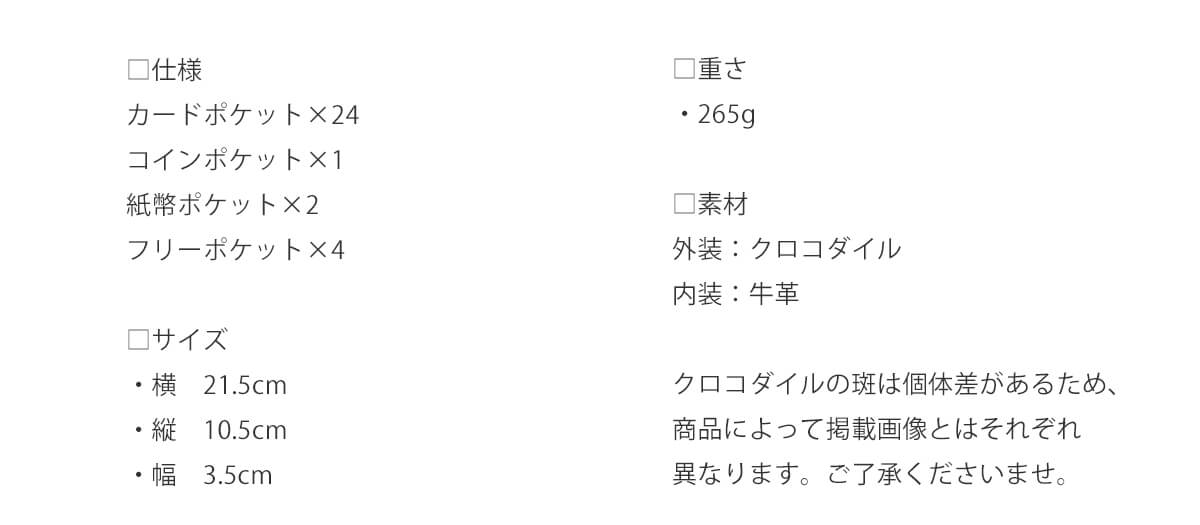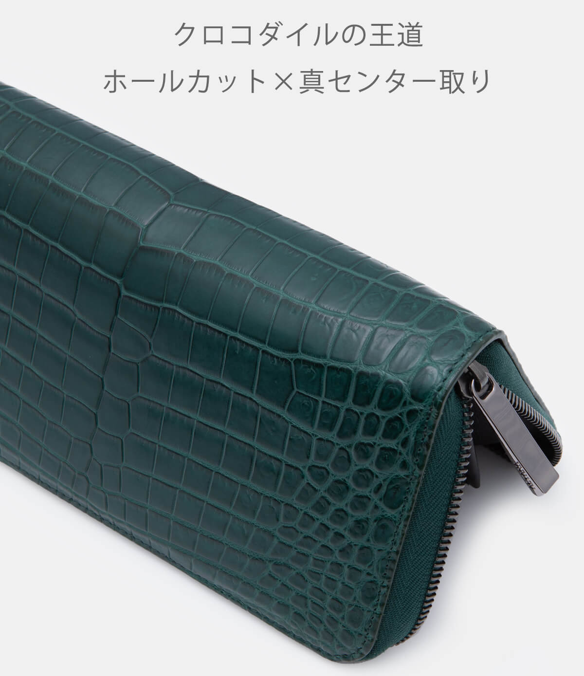 老舗として長い歴史の中で見てきた経験から生まれた最もクロコダイルの斑が美しく映えるサイズとデザインで仕上げる、そんな贅沢を極めたアイテムです。